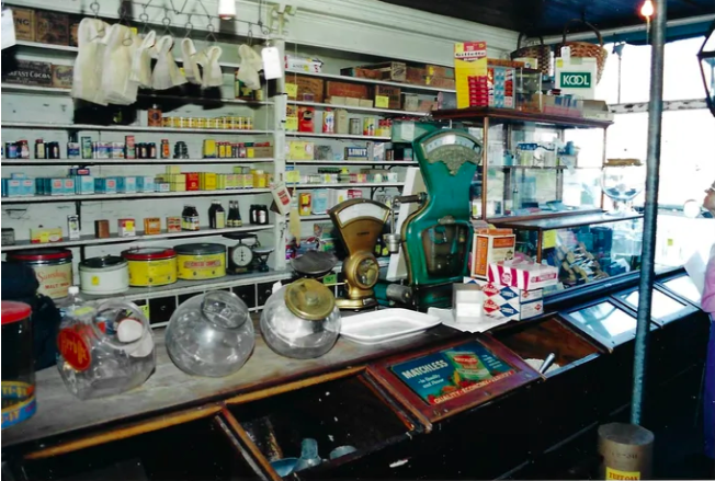 General stores were most popular between 1820 and 1860. They were of modest design with bare wood floors and many different types of goods for sale. They tended to be the center of town life, with folks gathering to gossip and play cards near the wood stove to stay warm.